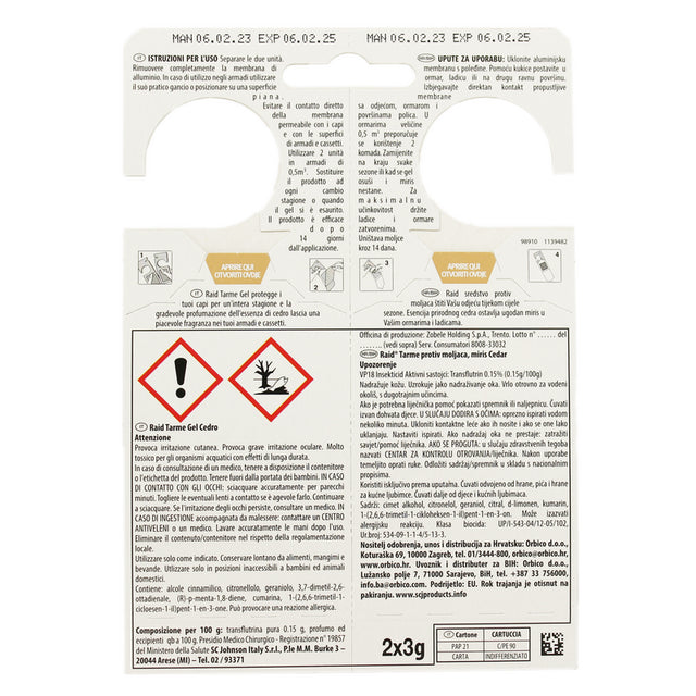 Raid Tarme Gel skyddar dina plagg under en hel säsong och den trevliga doften av essensen av Cedar lämnar en trevlig doft i dina garderober och lådor. Prova sin testade anti -Entry -formel, godkänd av Woolmark®.